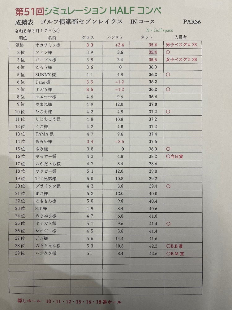 第51シミュレーションハーフコンペ成績表